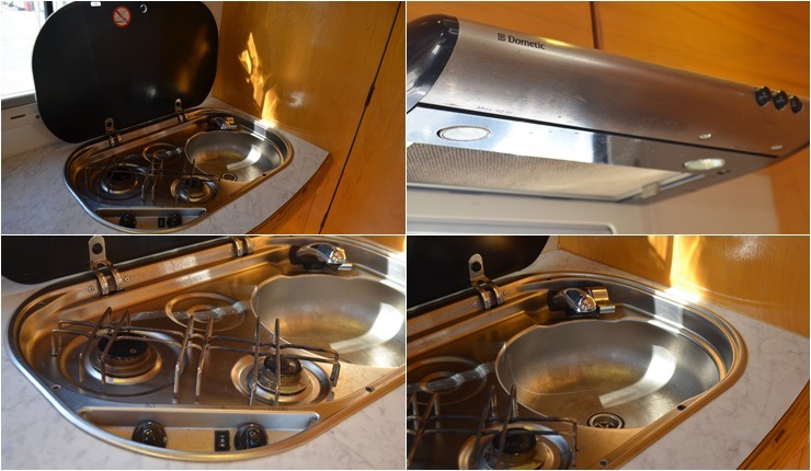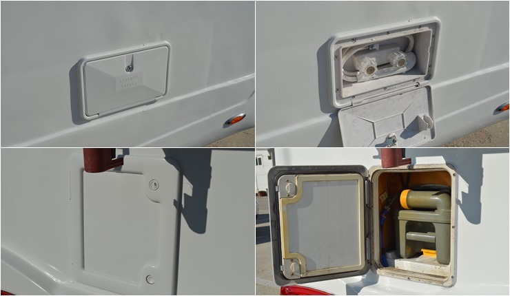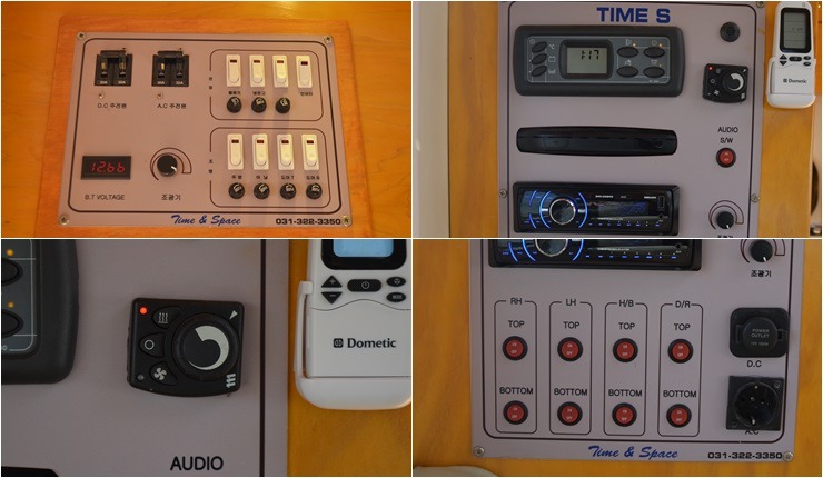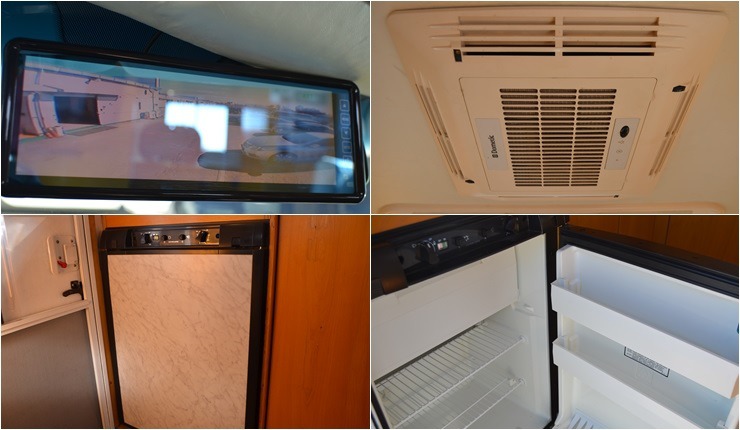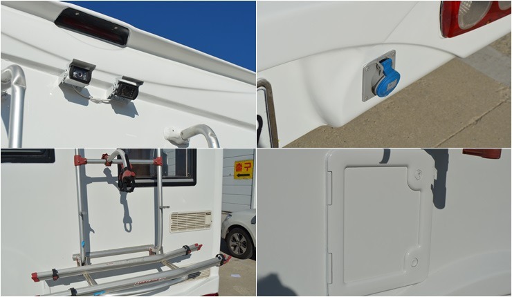 천장에어컨, 무시동경유히터, 어닝, 태양열 100, 냉장고, 가스렌지, 화장실, TV, 인버터 300W ,400A 배터리,자전거캐리어 등 입니다.