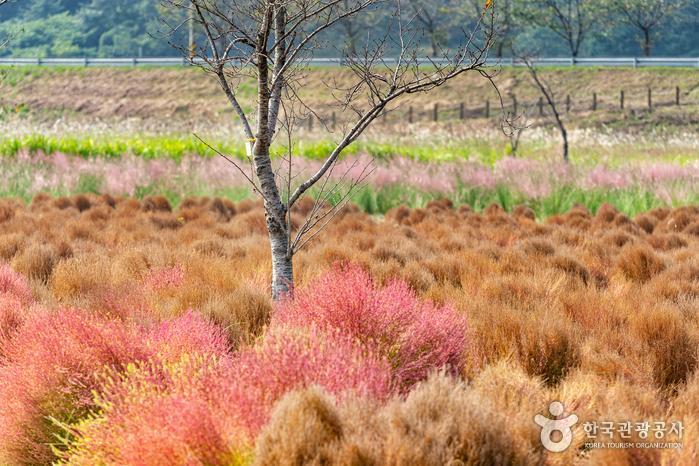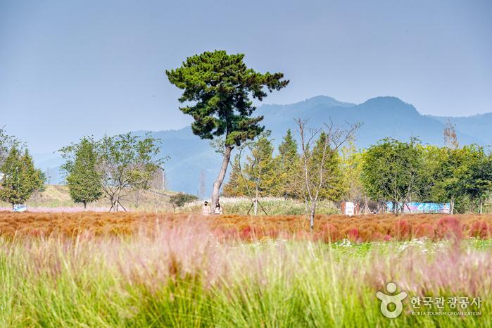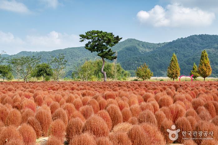 의령 댑싸리 군락지는 작년부터 본격적으로 알려지기 시작했는데, 올해는 작년보다 그 규모가 2배로 넓어졌다고 한다. 넓어진 규모 덕분인지 사람들이 많이 찾아와도 생각보다 여유롭게 주변을 둘러볼 수 있다. 특히 해가 지는 일몰 시간 즈음에 포인트가 되는 소나무를 배경으로 사진을 찍는다면 꽤 그럴듯한 예쁜 사진을 남길 수도 있으니 참고해도 좋을 듯하다. 호국의병의 숲 주변은 댑싸리뿐만 아니라 규모는 작지만 핑크 뮬리와 갈대 및 코스모스 군락지도 한데 모여 있어 이곳저곳 둘러보며 가을을 즐기기에 충분한 곳이다. 작년과 올해는 코로나 때문에 이곳에서 제대로 된 축제 행사를 열지 못했다고 하는데, 내년부터는 댑싸리와 함께 의령에서 성대한 축제가 열리길 기대해 본다.