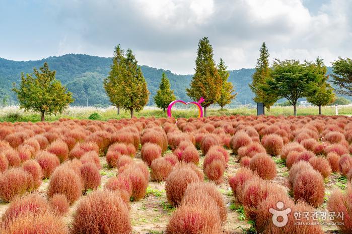 생소한 이름의 댑싸리는 사실 알고 보면, 우리가 예전에 집안에서 쓰던 싸리비의 재료로 알려진 친숙한 식물이다. 1년생 초본 식물로 7~8월 한여름에는 짙은 초록빛을 띠고 있다가 가을이 시작되는 9월 중하순부터는 붉은빛으로 색깔이 점점 변하고 나중에는 완전한 갈색으로 변하게 된다. 초가을 시즌 시기를 잘 맞춰 댑싸리 군락지 방문을 한다면, 알록달록 붉게 변해가는 댑싸리의 예쁜 풍경을 만날 수 있지만, 자칫 시기를 놓친다면, 어두운 갈색빛의 댑싸리만 볼 확률이 높으니 만약 댑싸리를 보러 갈 목적이라면 방문 타이밍을 제때 맞추는 것이 관건이다.