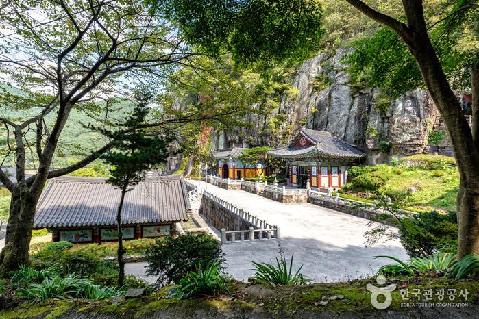 봉황산 자락에 자리 잡은 일붕사는 신라 성덕왕 때 지어진 사찰로 처음엔 당시 성덕왕의 이름을 딴 성덕사로 불렸지만 이후 이름이 바뀌어 일붕사가 된 곳이다. 창건 이후 잦은 화재로 인해 소실 및 중건을 반복하다가 1980년대 중반 다시 한번 큰 화재로 인해 완전 소실이 된 후에는 산에서 내려오는 불의 강한 기운을 막기 위해 기암절벽 안쪽으로 동굴을 파 동굴 법당을 만들기 시작한 것이 지금은 동양 최대의 동굴 법당으로 알려지면서 기네스북에도 등재가 된 곳이라고 한다.