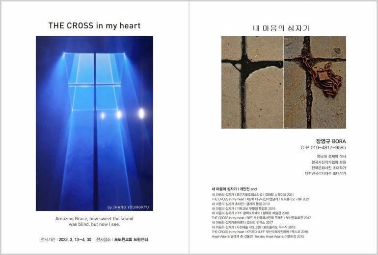 THE CROSS in my heart 장영규 BORA 지나치던 그곳에서 십자가 고난을 만났습니다. 십자가 희생을 만났습니다. 의미없던 그것에서 십자가 부활을 만났습니다. 십자가 생명을 만났습니다. Amazing grace~! I once was lost, but now I'm found. Was blind, but now I see. |