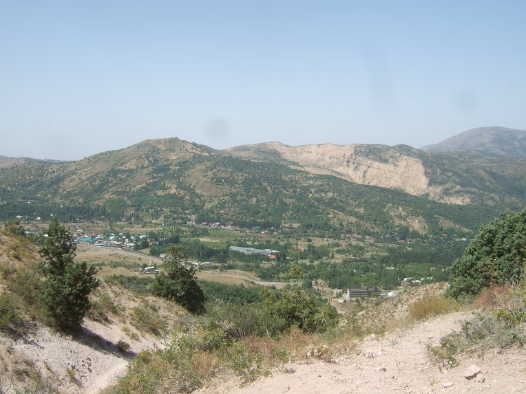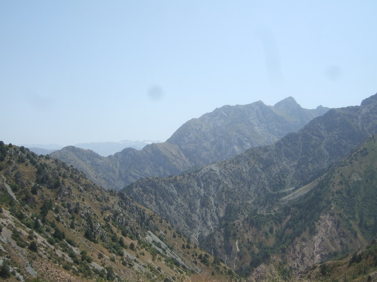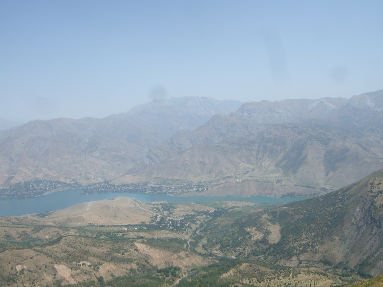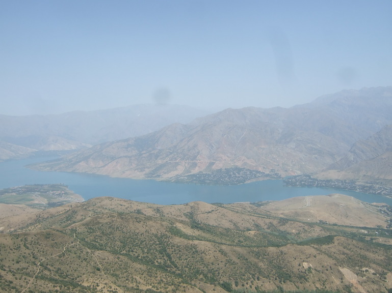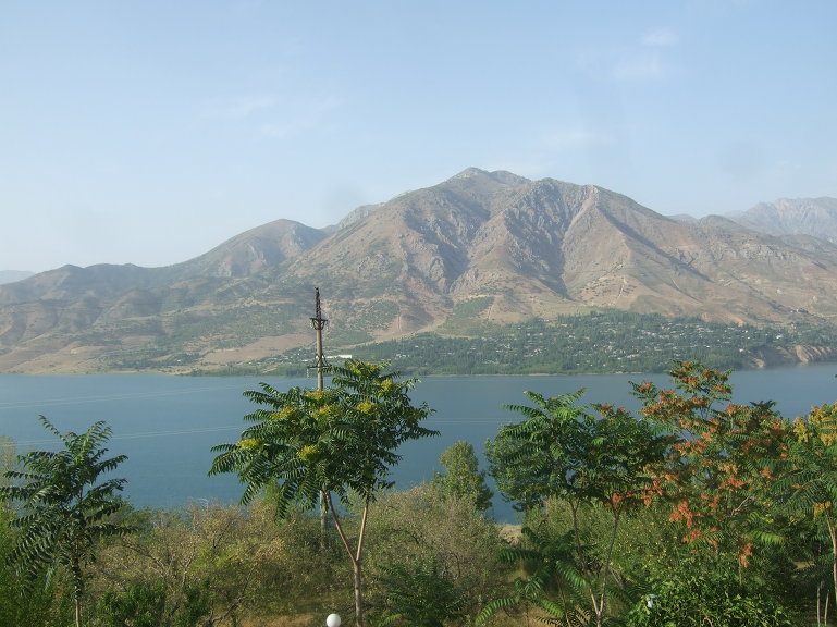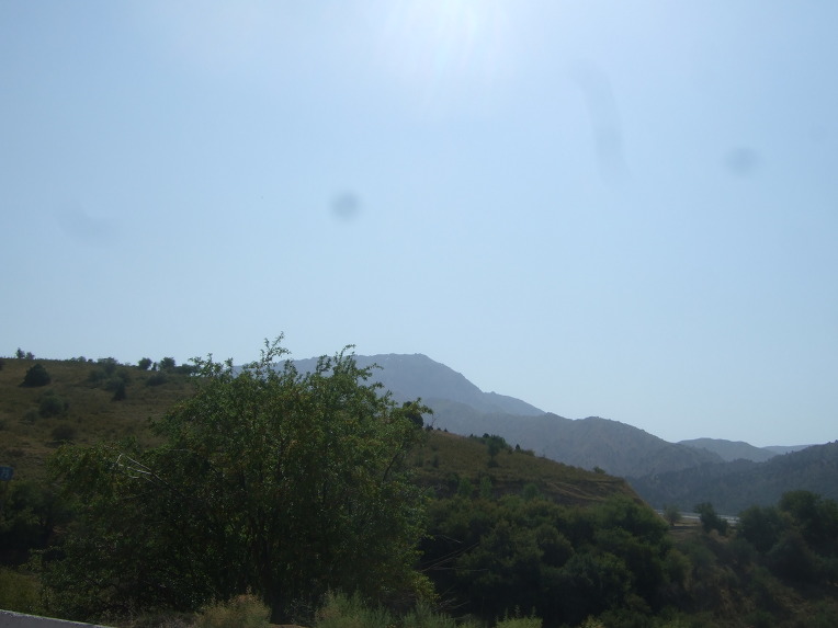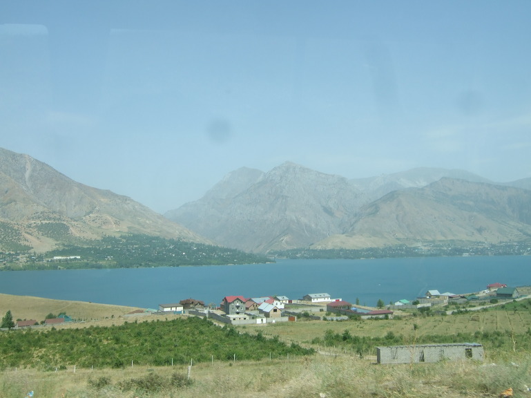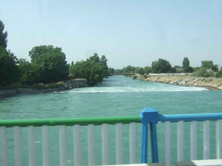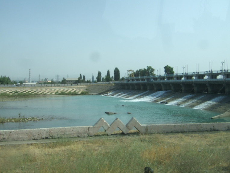 타슈켄트(Toshkent)시내를 벗어나면서 천산산맥(天山山脈, 텐샨산맥) 키르기스스탄에서부터 서쪽으로 흘러내려 차르박(Charvak)호수에서 잠시 머물다가 다시 서쪽으로 흘러내리는 시르다리야(Syr darya)강을 건넌다.