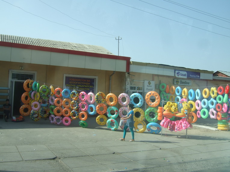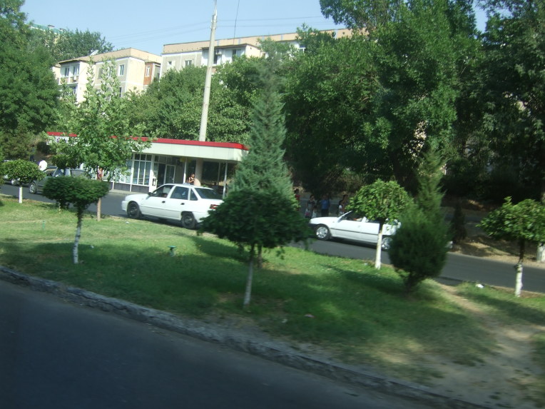 시르다리야강을 건너면 전원 풍경이 이어진다. 해바라기를 많이 심어 놓았다. 중아아시아의 대폭적인 작물인 목화는 보이지 않는다. 강 건너에서 바라보는 타슈켄트에는 고충 건물이 보이지 않으며 큰 공장도 보이지 않는다. 우리나라의 중소도시 같은 느낌이다.