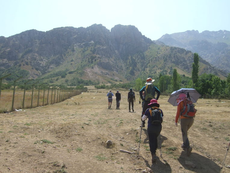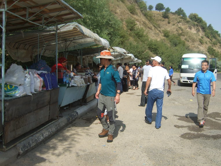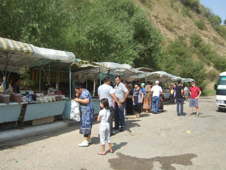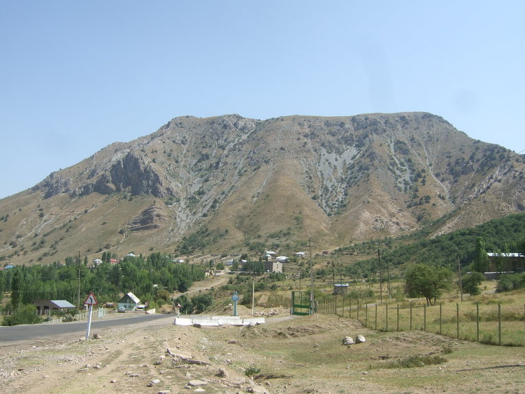 09:50 차르박의 침간(Chimgan) 마을에 도착한다. 침간(Chimgan)은 타지크어로 ‘푸른 땅’을 뜻한다. 길 가에는 소, 말, 당나귀, 노새(암말과 수탕나귀의 종간 잡종), 버새(수말과 암탕나귀의 종간 잡종), 양, 염소가 방목되고 있다. 산악 지대라서 그런지 특히 양과 염소가 많다.