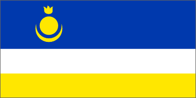 부랴트공화국의 국기는 위에서 부터 파랑색,하양색,노랑색의 가로형 삼색기에 국기의 깃대 윗부분에 소욤보뮨양을 본딴 문양을 삽입한 국기로서 파랑색,하양색,노랑색의 2:1:1의 색채의 빛깔 배율로 되어 있으며 이중에서 파랑색이 약간 넓은 면적을 차지하고 하양색과 노랑색이 약간 작은면적을 차지하고 있다. 파랑색은 바이칼호수와 강물과 푸른하늘 그리고 이나라의 자연을 상징한다. 그리고 하양색은 평화와 순수함 그리고 눈덮인 산과 초원 그리고 눈덮인 숲과 삼림지대와 이나라의 모든사람들을 노랑색은 이나라의 문화 유산과 지하자원 그리고 부를 상징하며 국기 윗부분에 새겨진 소욤보문양을 본뜬 문양은 이나라가 몽골민족의 후예임을 상징하며 통일과 단결을 상징한다. 이국기는 국가와 민족의 부활과 재생을 의미하고 있다.정식비울은 2:1과 3:2이다.