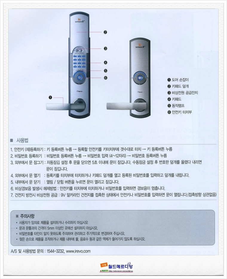 [세대 내 편의시설] 디지털도어락 사용법 안내 작성자최인혁(104)|작성시간11.07.20|조회수736 목록 댓글 0 글자크기 작게가 글자크기 크게가 1. 디지털도어락 사용법 안내 * 세대 현관 도어락를 원격 개폐제어를 원하시면 별도의 kit를 설치하셔야 합니다. 다음검색 현재 게시글 추가 기능 열기 북마크 신고 센터로 신고 댓글 댓글 0 댓글쓰기 답글쓰기 댓글 리스트