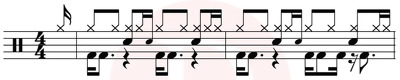 베이스드럼의 셔플 페달링으로 인상적인 곡입니다.