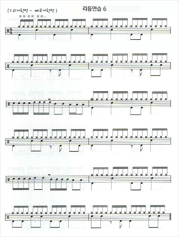 하이햇심벌을 양손으로 16분음표로 표현하는 형태로