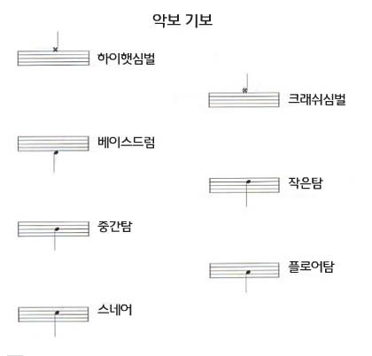 아래 악보를 보면 하이햇으로 왼발 카운팅을 세길때