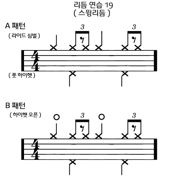 라이드심벌로 첫번째 와 세번째박에 한박씩 세기고