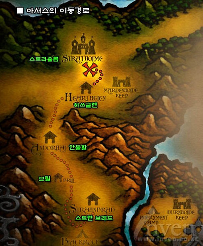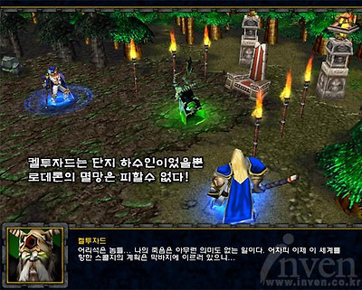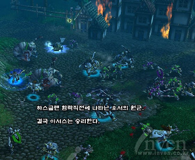 오늘도 아제로스세계에서 하루하루를 보내고 계신 와우인벤 식구분들. 와우를 처음 접하게되면 나오는 동영상의 첫 문구를 기억하고 계시는 분이 있는가. '워크래프트 10년, 이제 그 새로운 역사가 시작된다.' 게임의 역사를 알면 게임에 더 몰입하기 쉽고 더 재미있어진다. 이를 감안한 것인지 현재 와우의 세계에는 워크래프트 1 '오크와 휴먼'부터 워크래프트3 확장팩 '프로즌쓰론'에 이르기까지 그 역사의 현장들이 고스란히 구현되어있다. 유저들이 매일 드나들고 있는 오그리마나 언더시티, 스톰윈드, 아이언포지등의 대도시들이 어떻게 생성되고, 또 건설되는 동안의 에피소드 등의 이야기들, 도시에 세워져있는 동상하나 부터, 일반 필드와 던전에 있는 구조물, 심지어 퀘퀘한 서고에 놓여져있는 책 하나까지도, 알고보면 제 각각의 사연들을 담고있다. 자신이 그냥 무심하게 지나쳐갔을지도 모르는 한낮 구조물들에 얽힌 이야기들을 듣고 싶지 않은가? 물론 이 이야기들을 모른다고 해서 와우의 게임플레이에 지장을 받는다거나 하는 그런일은 절대로 없다. 하지만 아는만큼 보인다고 그 누가 그랬던가. 지금부터 풀어나갈 이야기들은 여러분의 와우생활을 약간 더 즐겁고 풍족하게 해줄 수 있으리라고 기대한다. 앞으로 총 8편에 걸쳐서 현재 와우의 4년전의 세계인 워크래프트3의 캠페인들을 하나하나 따라 나가면서, 와우의 역사와 또 그것이 현재의 와우에 어떤 식으로 구현되어있는지 살펴보자.. ![]() [ 이 들은 왜 싸워야만 하는가 ] 오늘은 그 첫시간으로 워3에서 프롤로그 켐페인을 제외한 첫 캠페인인 휴먼이다. 휴먼 캠페인의 주요 무대는 동부왕국과 노스랜드이다. 노스랜드는 현재 구현되어 있지 않은곳이고, 와우에서 제일 강력하다고 알려져있는 리치킹 아서스가 살고있는 스컬지의 총본부이다. 리치킹과 그의 언데드 스컬지 군단은 저 춥고, 메마른땅 노스랜드에서 현재의 와우세계를 정복하기위해 기회를 노리고 있다. ![]() [ 노스랜드의 리치킹 아서스 ] 동부왕국의 주요 무대는 알터랙 산맥과, 그 북쪽으로 이어지는 티리스팔 숲, 서,동부 역병지대다. 과거 불타는군단의 침공이 있기전 티리스팔 숲은 휴먼 얼라이언스 7왕국(알터랙, 스트롬가드, 달라란, 길니아스, 아제로스, 쿨 티라스, 로데론)중 하나였던 로데론왕국의 수도인 로데론이 자리잡고 있었으며, 서,동부 역병지대는 로데론왕국의 주요 농.경제의 중심지의 역활을 수행한 비옥했던 도시였다. 그렇게 번영했던 왕국이 왜 지금은 그렇게 황폐하고, 버려진 스컬지의 본거지로 변해버린 것일까? 이 의문점을 해결하기 위해선 지금의 와우세계로부터 4년전의 세계 워크래프트3의 시간속으로 여행해 볼 필요가 있다. 프롤로그 동영상 한마리의 까마귀가 로데론의 왕궁으로 날아든다. 주요 현안인 오크들의 수용소 탈출과 로데론 북쪽지방부터 퍼지고 있는 전염병에 대해서 토론하고있던 로데론 왕국의 국왕 테러나스는 당돌하게 왕궁의 중앙에 날아든 까마귀를 유심히 쳐다본다. 이윽고 그 까마귀는 사람의 모습으로 변하게 되고, 불타는군단의 아제로스 세계 침공계획을 테러나스 국왕에게 경고한다. 그러나, 테러나스 국왕은 이를 무시하게되고, 이에 실망한 예언자는 자신의 경고를 들어줄 수 있는 다른 지도자를 찾아서 떠나게 된다. ![]() 1장 - 스트란브래드 방어 로데론 왕국의 왕자이자 패기넘치는 성기사인 아서스는 오크들이 출몰하고 있는 알터랙 산맥의 스트란브래드를 방어전을 위해 자신의 상관이자 존경받는 성기사 우서 더 라이트브링어와 함께 투입된다. ![]() 그러나, 아서스가 도착했을때 스트란브래드는 이미 검은바위부족오크들에게 유린당한 상태였고, 격분한 아서스는 자신의 백성들을 노예로 쓰려하는 오크대장을 처치하게 된다. 알터랙 산맥의 중앙부근에 위치한 스트란브래드. 휴먼 캠페인 첫 번째 미션에 등장하는 이 도시는 그 이후 아직까지 폐허인 상태로 남아있으며, 현재는 비밀결사단이라는 조직이 장악하고 있다. 35레벨에서 40레벨 사이의 비밀결사단들이 밀집해있으며, 비밀결사단이라는 이름에 걸맞게 은신한 몬스터들이 많이 있다. 얼핏보면 조용해 보이지만 은밀한 위험이 도사리고 있는곳! 그곳이 현재의 스트란브래드다. ![]() [ 알터랙 산맥에 위치한 스트란브래드 ] 2장 - 블랙락과의 일전 아서스는 검은바위부족(블랙락 클랜) 오크와의 일전을 벌이고 있는 영웅적인 성기사 우서 더 라이트브링어의 지원요청을 받고 검은바위부족의 진영으로 쳐들어 간다. 그곳에서 아서스는 검은바위부족의 블레이드마스터가 주민들을 희생시켜 악마를 소환하려하는것을 보게되고, 그동안 보지못했던 의식들을 보고 혼란스러워한다. ![]() 여기서 출현하는 오크들은 불타는 평원과 검은바위산에 거점을 잡고있는, 검은바위부족 오크들이다. 4년전만해도 알터랙등지까지 세력권이 뻗어 있을정도로 상당히 강력한 부족이었음을 알 수 있게 해준다. 하지만 현제 와우의 세계에서는 세력이 많이 줄어들어 검은바위첨탑에 대부분 몰려있고, 검은용 데스윙의 자손 네파리안의 지배를 받고 있다. 현재 공개된 파티플레이용 던