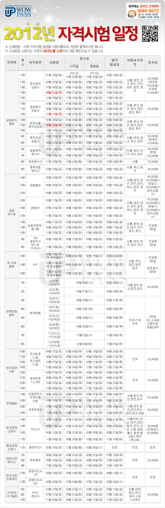 확정된 2012년 금융자격 시험일정 확인하셨나요?
