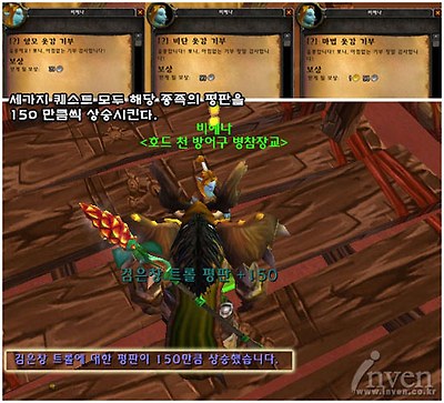 퀘스트가 완료되며 해당 종족에 대한 평판이 150이 상승한다.