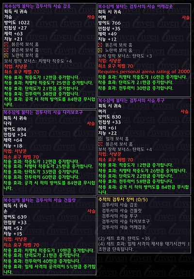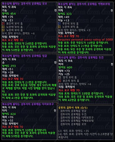 2.3 패치에 시작될 투기장 시즌 3의 보상아이템이 테스트서버를 통해서 공개되었다.