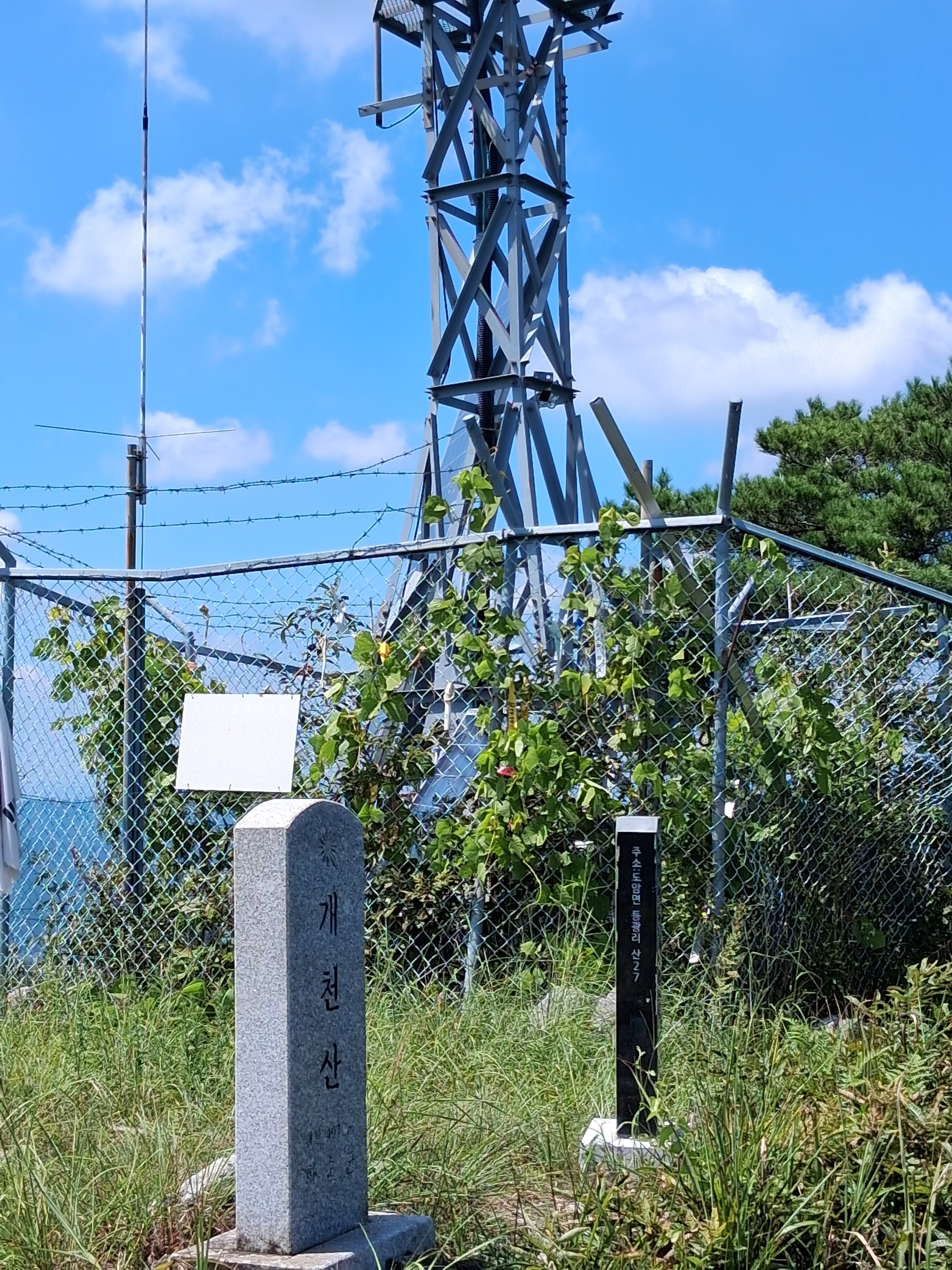 *** 기 설치된 개천산 정상석 그리고 통신탑 ***