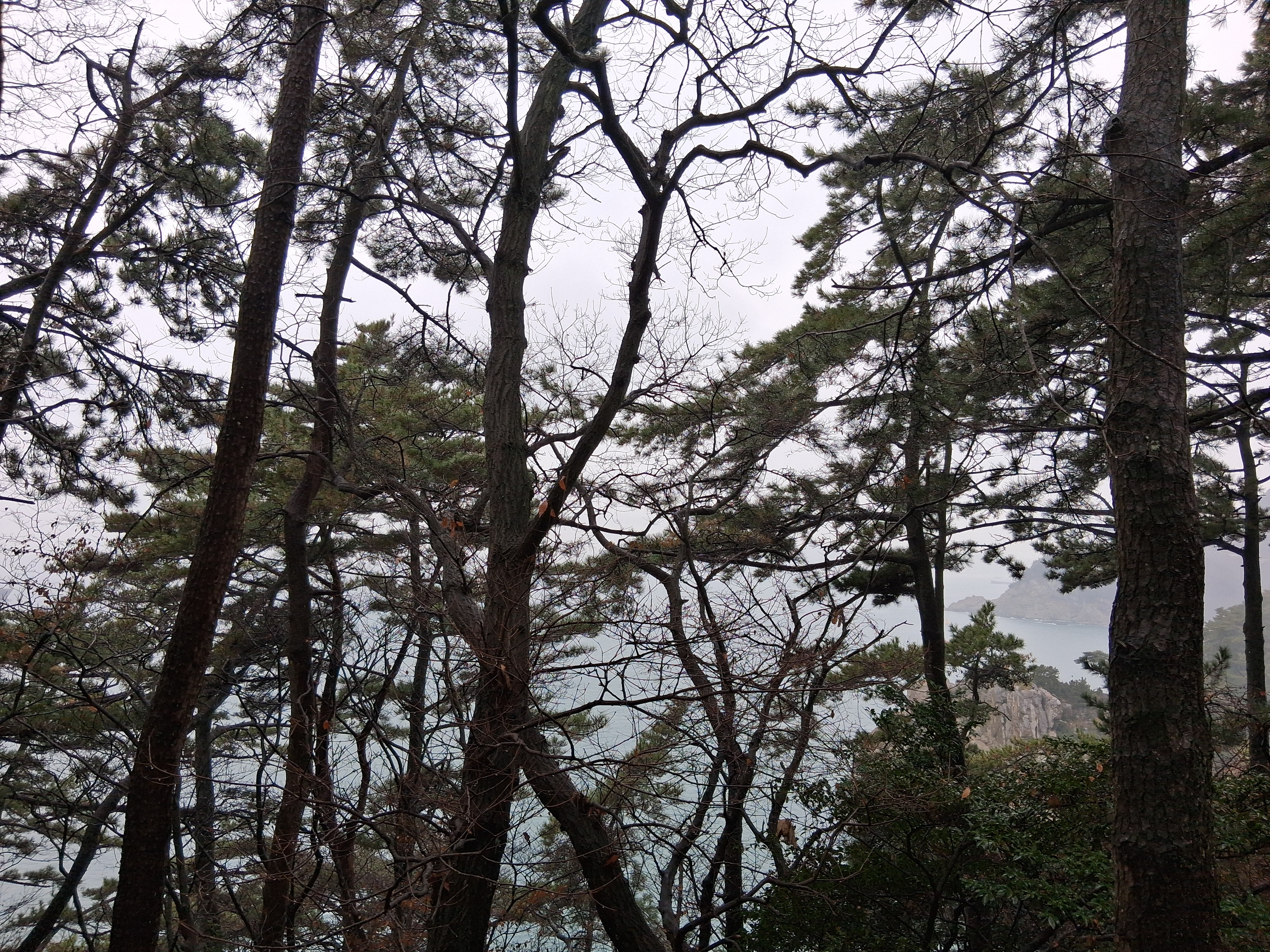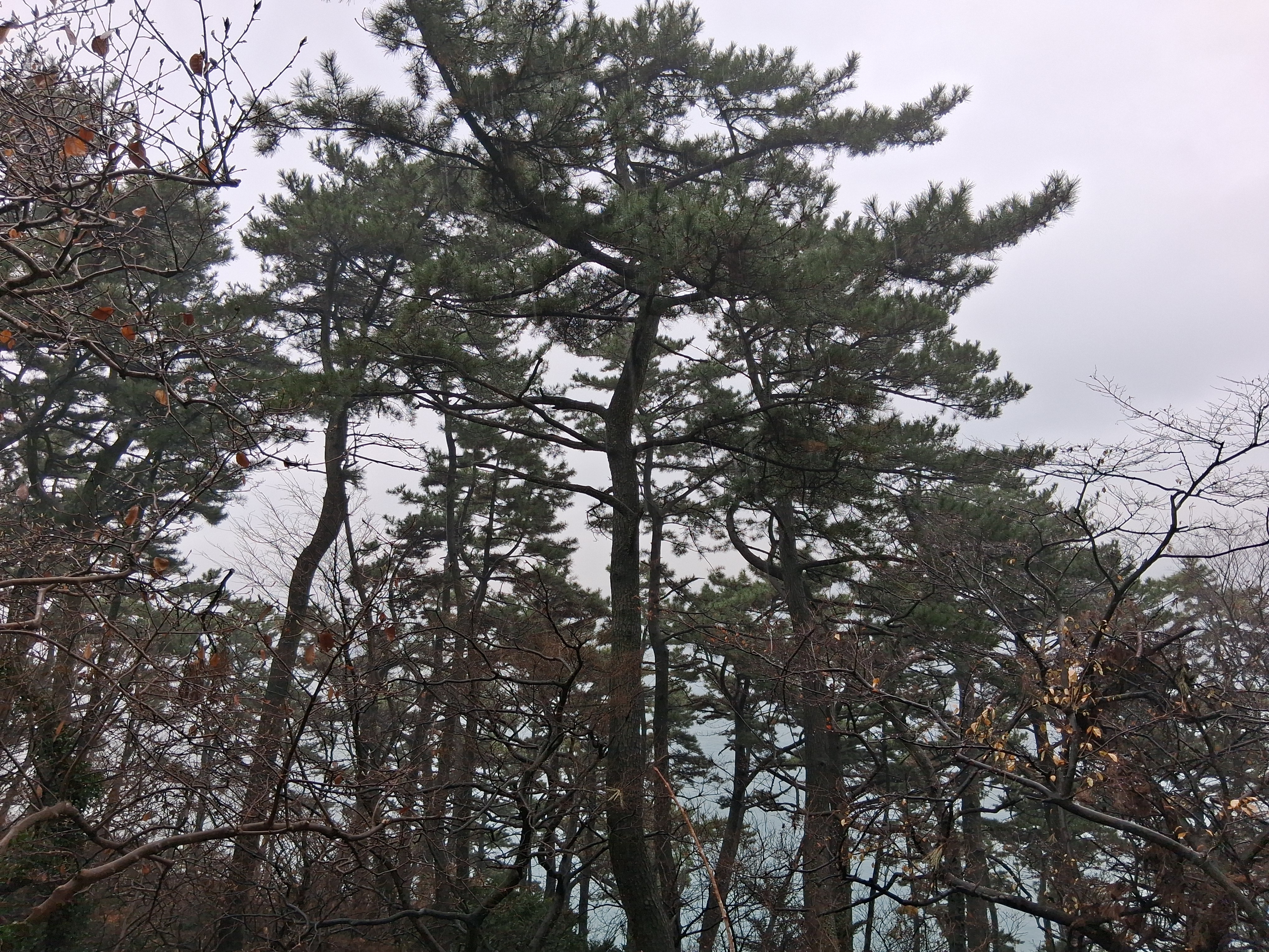 블어 수령이 오래된 소나무 숲과 함께 푸른 바닷물과 조화를 이루어