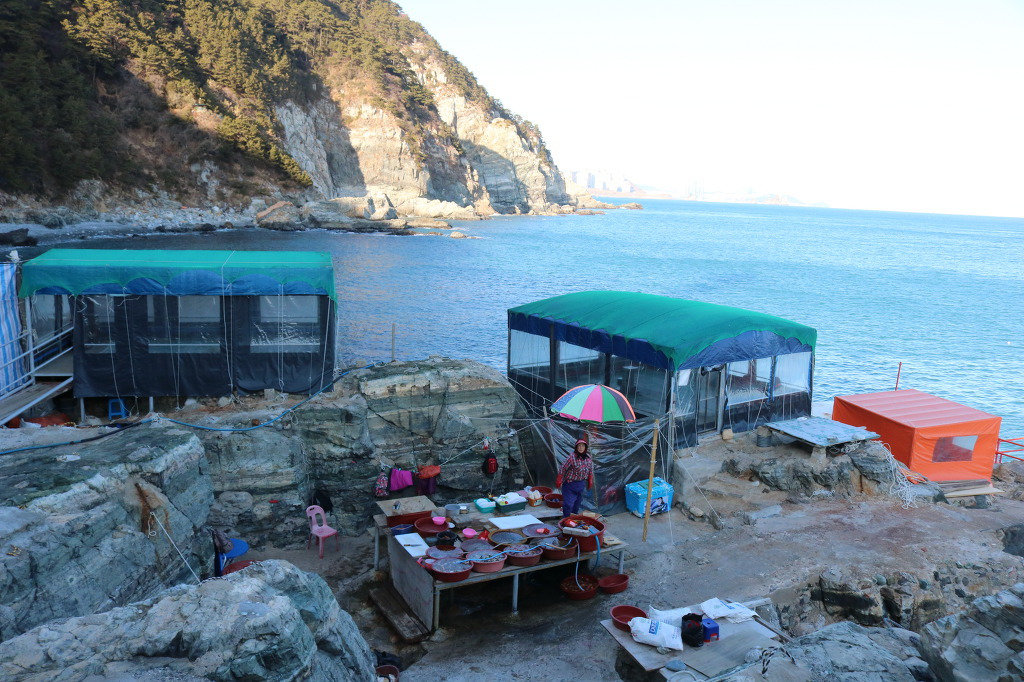 덮인 자갈마당과 바닷물을 끌어들여 만들어 놓은 풀장인 '곤포의