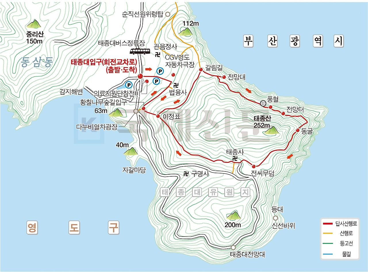 산행코스:태종대(주차장)-태종대(입구)-순환도로-자연보호비-남항조망지-태종대(전망대)-신선바위-등대-