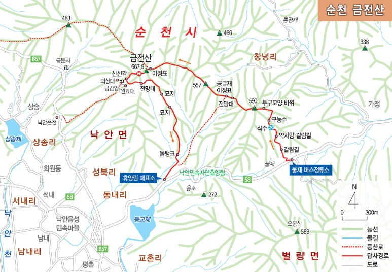 산신각-의상대-금강암-전망대-묘지-물탱크-휴양림매표소-도로-낙안읍성민속마을