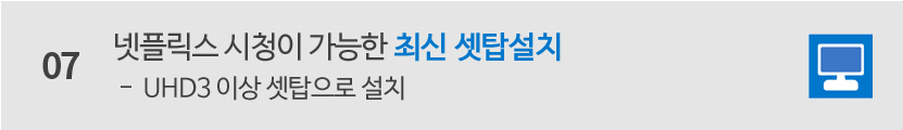 LG, LG 헬로비전은 넷플릭스 시청이 가능한 UHD3 이상 셋탑, KT는 셋탑 중 무선 UHD 인비저블 셋탑, 지니 셋탑으로 설치해야 호환 가능하며, SK는 현재 공식적으로 지원이 되지 않습니다. 그러니 참고하시길 바랍니다.