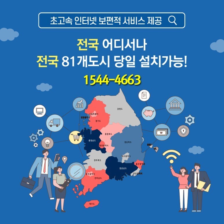 SK, LG, KT 등 설치가 안되는 지역 또는 희망하는 장소에 품질 좋은 대칭형 인터넷으로 설치를 해드리고 있으며, 설치 후, 품질 테스트합니다. 이때, 마음에 안 드신 내용이 있다면 아무런 불이익 없이 해지도 가능하며, 마음에 들면, 계약하는 시스템이니 안심하셔도 됩니다. " 설치가 안되는 지역도 새롭게 품질 좋은 인터넷으로 설치해드립니다."