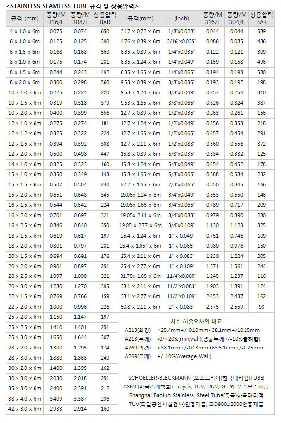 작성자매니저 작성자 본인 여부 작성자 작성시간 13.12.03 일반 철 심레스튜브 규격과압력표는 유압휘팅 및 배관자재 안에 들어가시면 압력표를 찾아 보실수 있습니다.