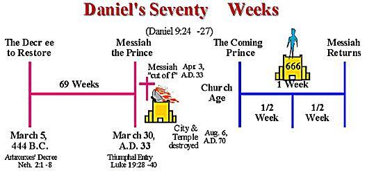 70이레 가운데 7 이레(49년)면 BC 445년으로부터 BC 397년에 해당됩니다. 그런데 BC 397년은 구약의 마지막 선지자 말라기가 활동했던 시기입니다. 바로 이 49년의 기간 동안 예루살렘성이 재건되고 이스라엘의 역사가 새롭게 시작되는 일이 일어난 것입니다.
