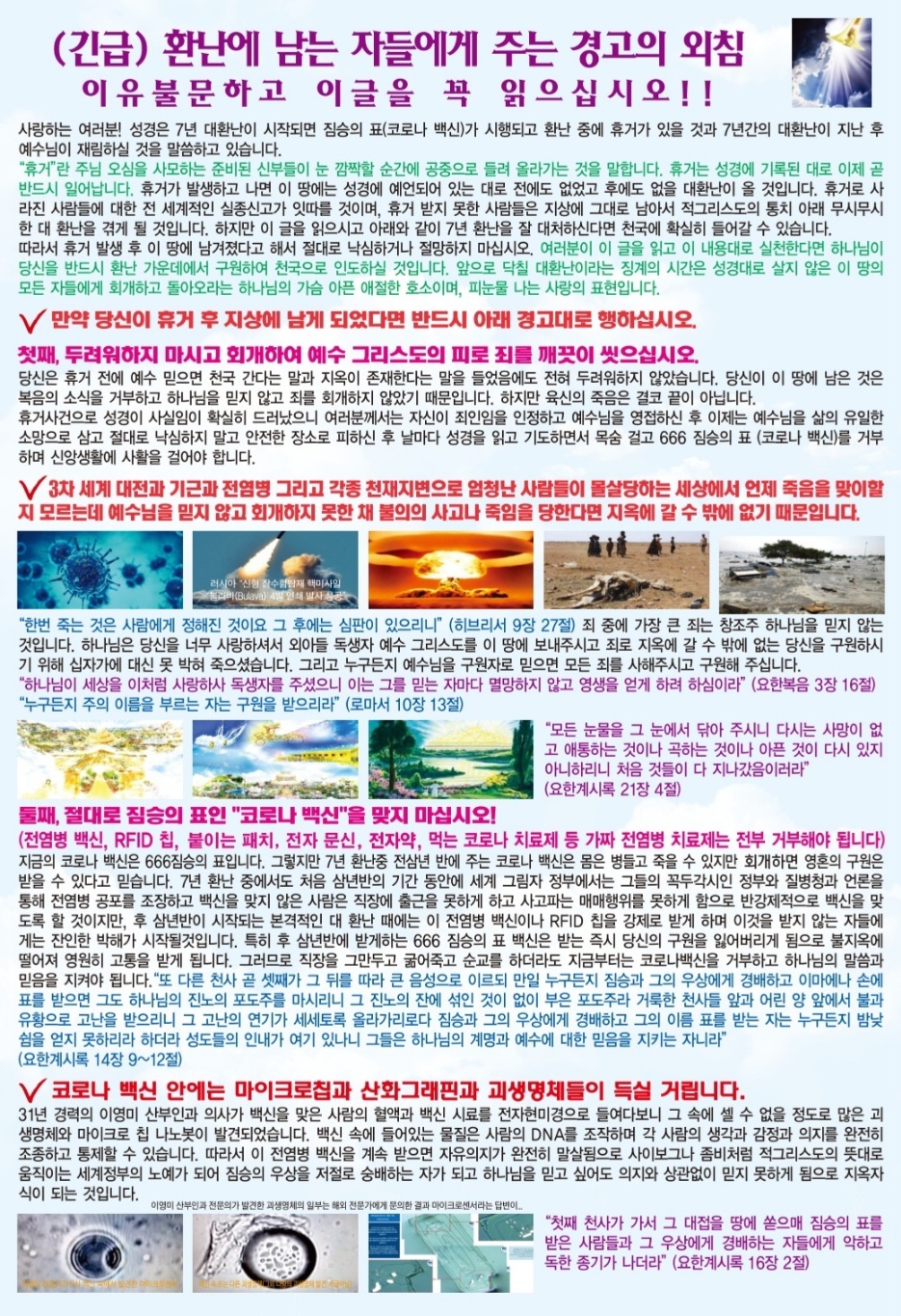 곳곳에 붙여있으며 차량으로 말씀 전도와