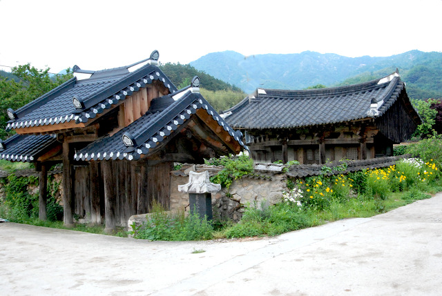 마을 한가운데 오래된 선조를 모시는 위패 재각이 자리잡고 있다.