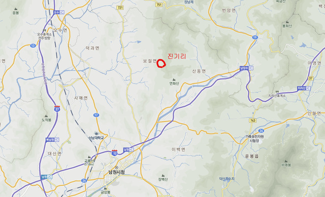보절면 진기리는 남원시내에서 30분 거리에 위치해 있다.