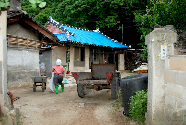 마을회관에서 하룻밤을 묵고 마을을 떠나면서