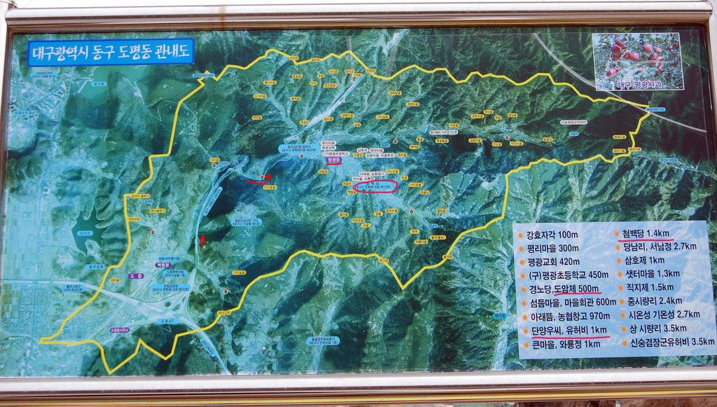 대구근교에서 보기드문 작고 많은 골짜기가 형성된 평광동 안내도