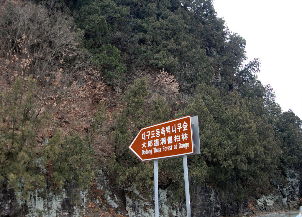 비탈진 바위절벽에 형성된 천연기년물 도동 측백나무 숲 1962년 천년기념물 1호로 지정