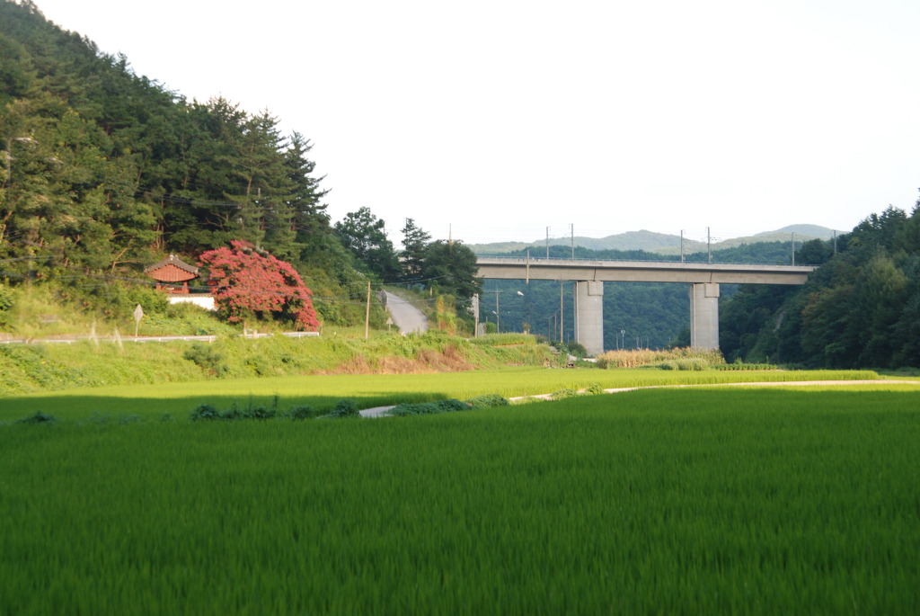 마을 입구에 KTX 고속전철이 지나가고 있었다.