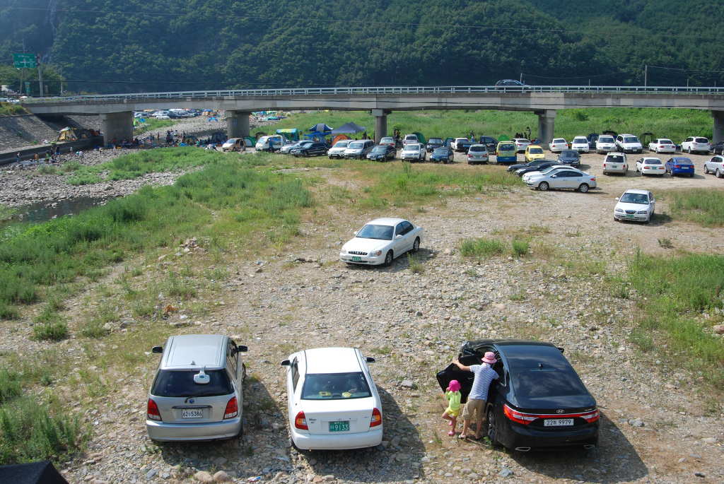 울산으로 향하면서 피서객들로 넘치는 경주 산내면 하천