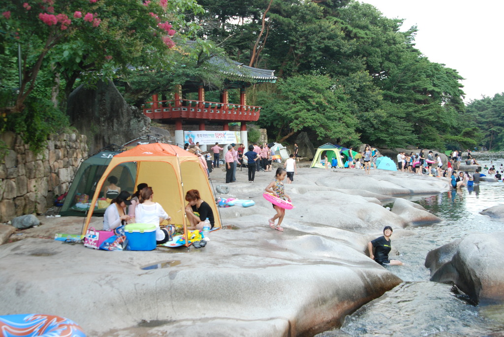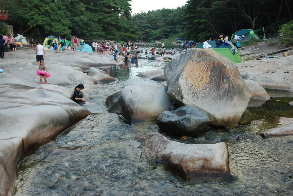 넓은 암반사이로 물이 흐르는 작천정 계곡