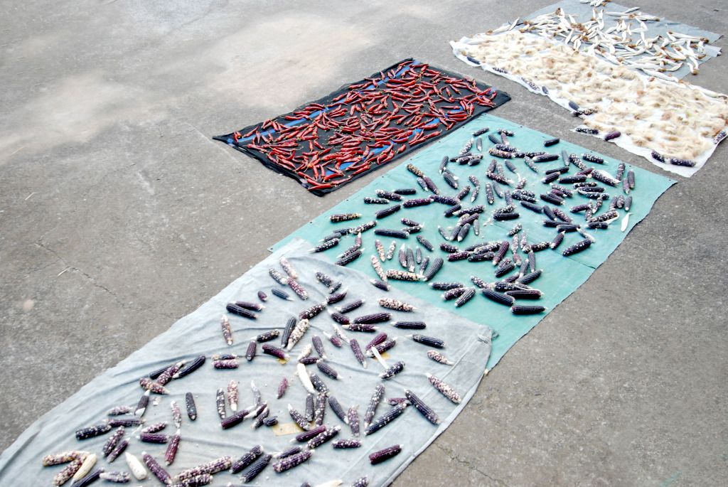 함께 하시는 할머니께서 농사 지은 농산물을 말리고 계셨다.