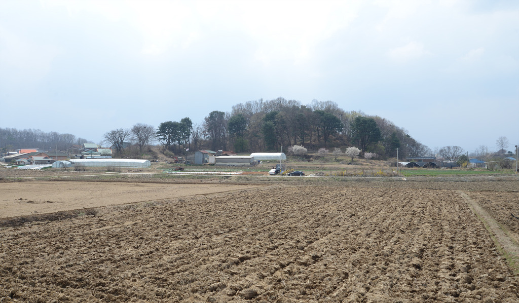 만우리 마을을 벗어나면서 바라다 본 입향조 선조 묘소