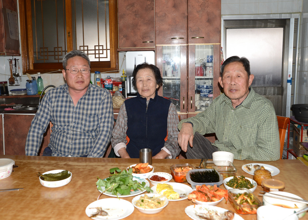 만우리 이장 (정평공 총무) 우종서님과 부모님, 점심식사 접대를 받으며
