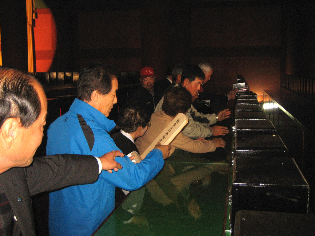 일가분들을 맞아 친절히 설명을 드리고 있는 우관제 전 회장님