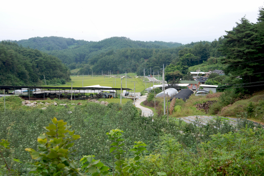 상운면에서 고개를 넘어 도착한 윗반송 집성촌 마을 전경