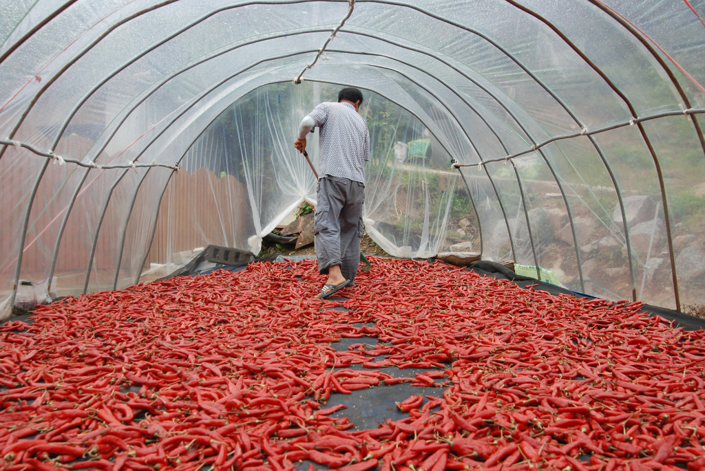 봉화에 비닐하우스에서 고추를 말리는 장면이 보인다.