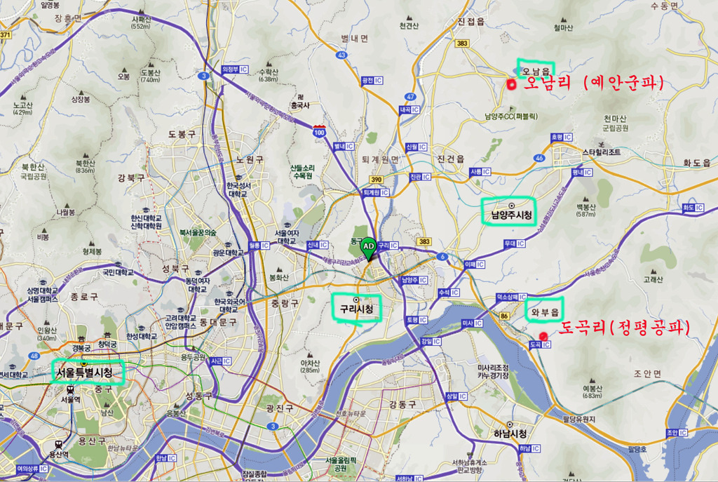 호선 강변역에서 남양주시 와부읍 정평공파 집성촌으로 먼저 이동한다.