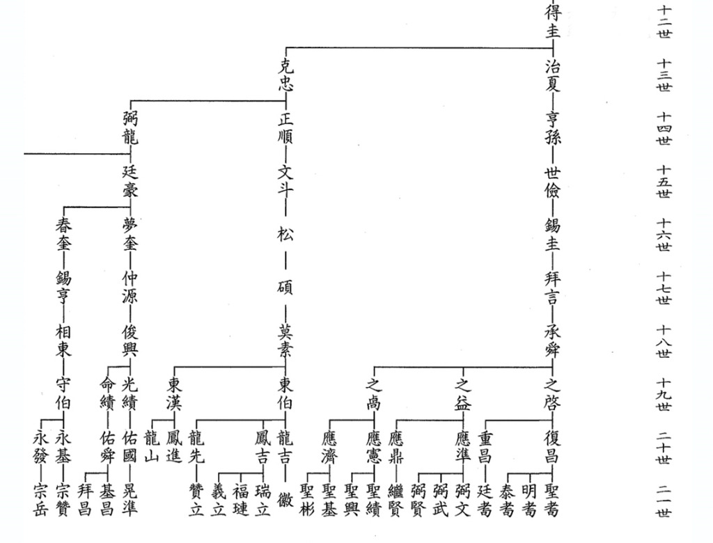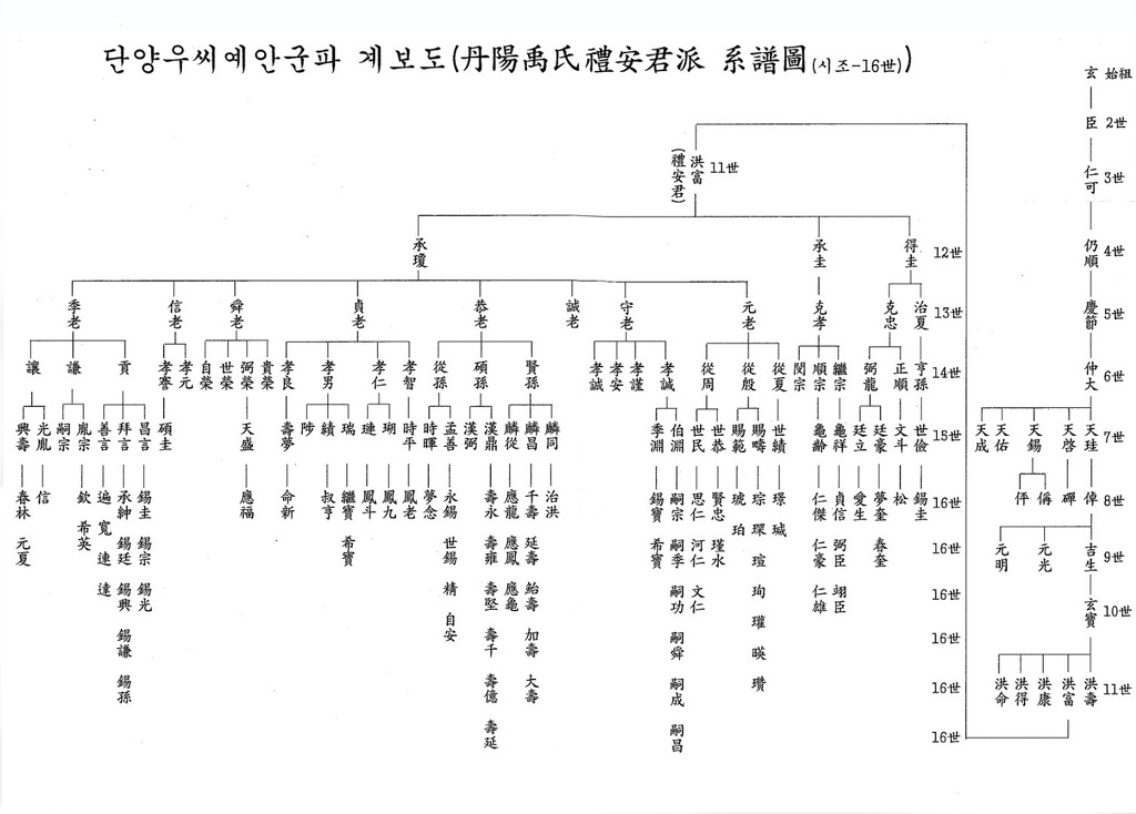 예안군파 족보에 나오는 계보도