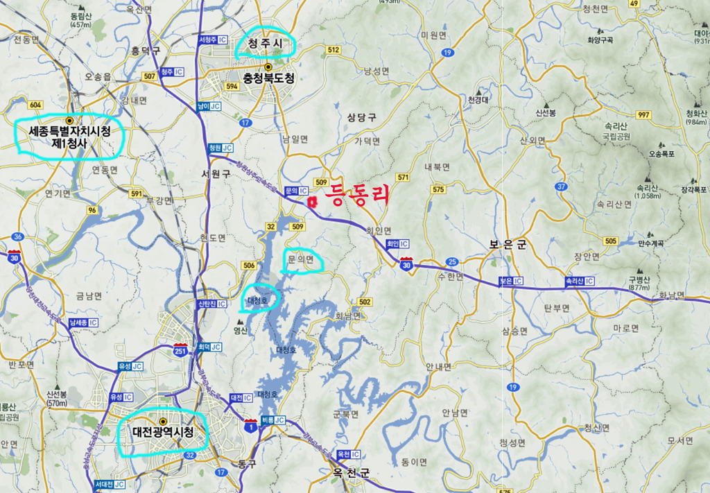 충북 청원군 문의면 등동리 집성촌 위치