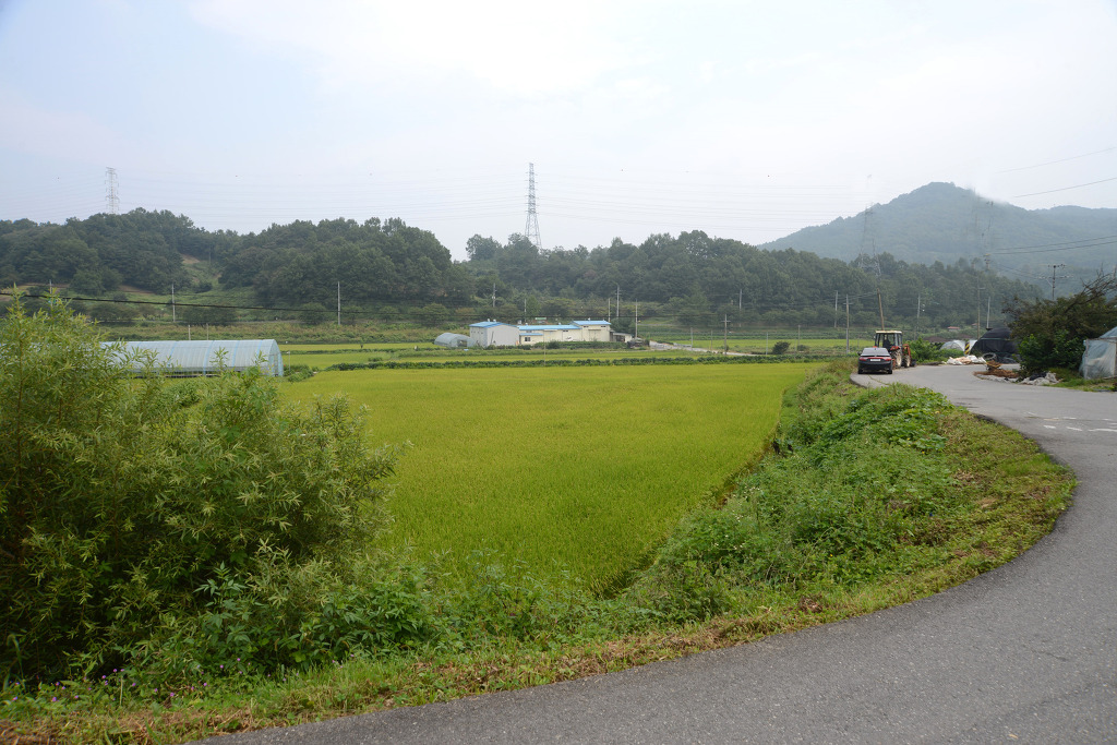 멀리 등동리 종중답 관리 사옥이 보인다.