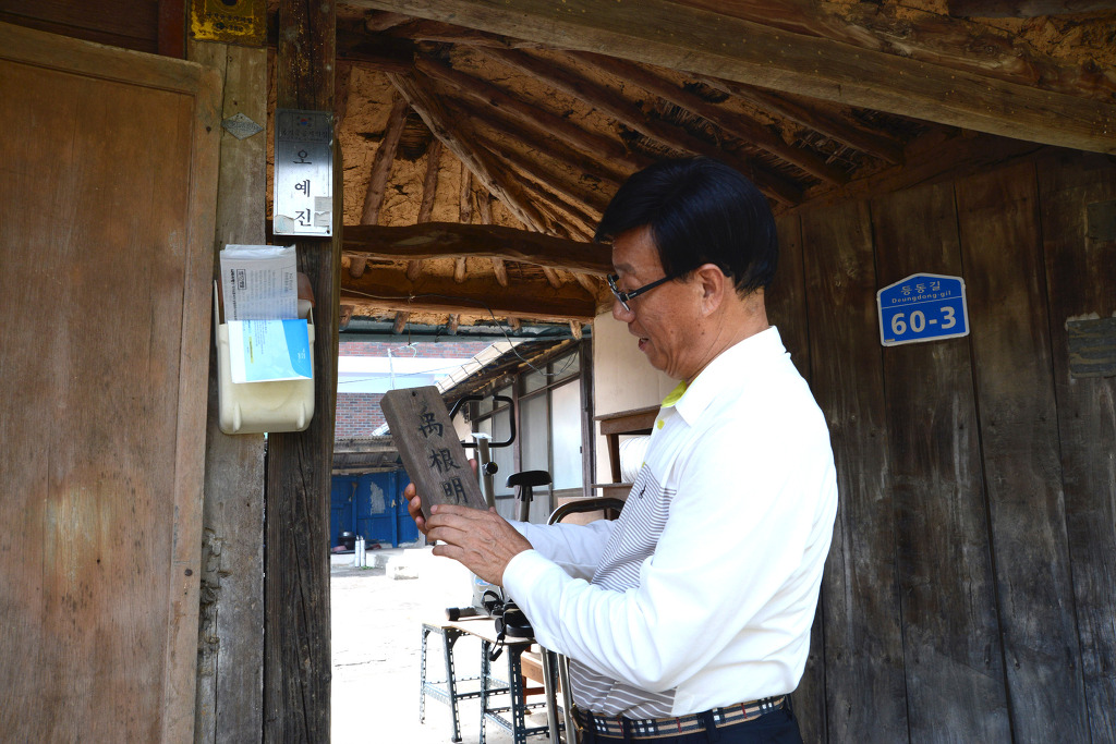 1960년대 말 학창시절에 직접 제작한 부친의 문패를 보고 계신다.