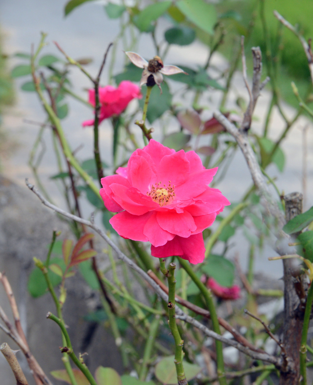계절을 모르고 핀 장미꽃이 나그네를 반기고 있다.