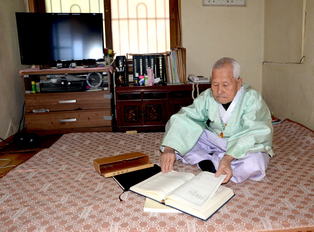 만복골 집성촌 방문시 고령의 연세이신 문장어른 우균명 어르신을 찾아 뵙고 젊은시절