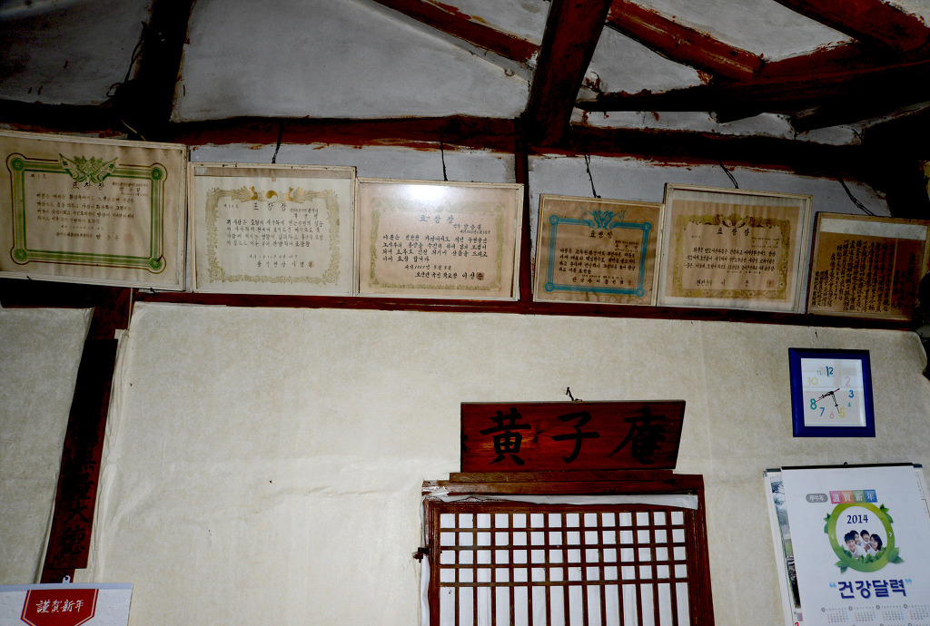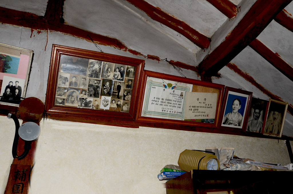 방으로 안내를 받던 중 마루에 옛 사진과 표창장들이 보인다.